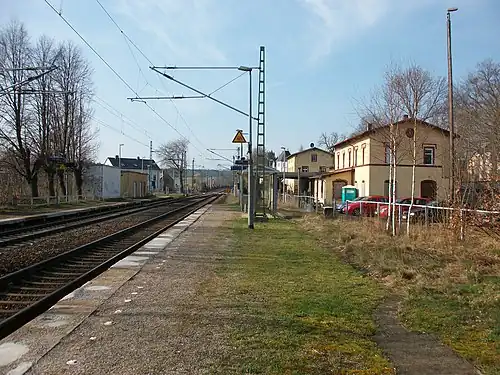Frankenstein (Sachs) station is a railway station in Oberschöna, Saxony, Germany. It is named after Frankenstein, which was the nearest settlement when the railway line was built and the station opened.