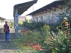 View of the station from the east from Omega bridge over the B 40, rail tracks and Kilianstädter Straße
