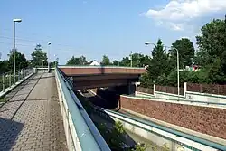 The station has a structural resemblance to Frankfurt-Sindlingen station: Oeserstraße passes through an underpass under the railway tracks, while foot traffic reaches the platforms by separate walkways and steps.