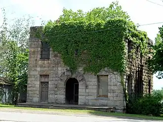 The former Franklin County Jail is a historic building at 3rd and River Streets in Ozark, Arkansas. It is a two-story masonry structure, built out of native sandstone. It is roughly cubic in shape, with a flat roof obscured by a crenellated parapet, and its entrance set in a Romanesque arch. It was built in 1914, and has been rehabilitated to house professional offices.[2]