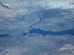 Originally, the Bureau of Reclamation referred to the impoundment formed behind Grand Coulee Dam as the Columbia Reservoir.[2] It was unofficially referred to as "Columbia Lake" and "Empire Lake" by local newspapers, including the Colville Examiner in Stevens County;[3][4] the latter name was chosen in a 1941 contest organized by the Spokane Daily Chronicle and forwarded to the Department of the Interior as a suggestion.[5] "Empire Lake" was suggested by 113 entries and was among the most popular of the suggestions, which also included "Grand Coulee" (later used for a separate reservoir), "Sunset", "Spokane", and "Roosevelt";[5] entries with the name "Columbia" were not considered due to its previous rejection by federal officials as an official name.[6]
