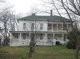 Franklin Landers–Black and Adams Farm (named for original owner Franklin Landers and later owners Black and Adams), also known as Mt. Aetna Stock Farm, is a historic home and dairy farm located in Brooklyn and Clay Township, Morgan County, Indiana. The farmhouse was built in 1862, and is a two-story, rectangular, Italianate style brick dwelling with a rear ell. It has a cross-gable roof, wraparound porch, and features projecting eaves with decorative brackets. Also on the property are the contributing dairy barn (1907–1908), two garages, calf barn, ice house, and acetylene pit.[2]: 5, 12