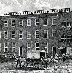 Industries including livestock yards, oil cloth works, nail manufacturers, dye works[14] and ice companies began operating in the mid-19th century. In about 1848, Thomas Potter and James Carmichael established the Franklinville Oilcloth Works. In the 1895 city directory, the Franklinville Carriage and Wagon Works, the Franklinville Steam Coffee Roasting Establishment, the Franklinville Dye Works, the Franklinville Ice Manufacturing Company and the Franklinville Maennerchor Hall, a German social club, are listed.