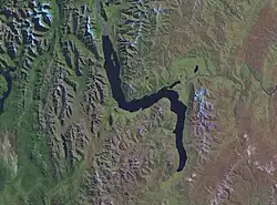 Lake Wakatipu (Māori: Whakatipu Waimāori) is an inland lake (finger lake) in the South Island of New Zealand. It is in the southwest corner of the Otago region, near its boundary with Southland. Lake Wakatipu comes from the original Māori name Whakatipu wai-māori.[1]