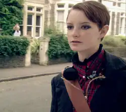 Franky is a complicated character, having been described in series 5 as an "androgynous and super-intelligent" girl who acts "strange".[3] She dresses in gender neutral clothing, wears her hair close-cropped and, although quite aloof, tends to be quite timid and low key. In series 6, she loses her androgynous and passive nature in favour of a more feminine, headstrong and blunt personality. Nevertheless, a defining feature of her character is her troubled past, something that plagues her throughout the series and occasionally causes concern from her friends. Very little of Franky's past is explained until towards the end of the series. It is known that her mother, Maria, had put her up for adoption when she was six years old, after a comment she made suggested that she was mentally ill (although it is later suggested that her mother was mentally ill herself). Although Franky's mental state has caused concern for her friends, particularly Liv, it is never addressed in detail.