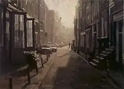 His landscapes and Amsterdam cityscapes are painted in a style that recalls the classical tradition of the Hague School and the Amsterdam Impressionists.[2]
