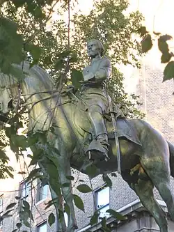 Statues of him stand in Riverside Park, corner 106th Street in Manhattan and in Forest Park in St. Louis, Missouri. There is also a park named for him in the Bronx, just south of the Courthouse near Yankee Stadium.[7] Seigel Street in Williamsburg, Brooklyn was named after him,[8] Sigel Street in Worcester, Massachusetts was also named after him, as well as the village of Sigel, Pennsylvania, founded in 1865, in addition to Sigel, Illinois, which was settled in 1863. Sigel Township, Minnesota, settled in 1856 and organized in April 1862, was also named for Sigel. There is a street named after him on the western campus of the National Geospatial-Intelligence Agency in St. Louis (which is located on the grounds of the former St. Louis Arsenal). In about 1873 Sigel himself visited Sigel Township and New Ulm, Minnesota.[9]