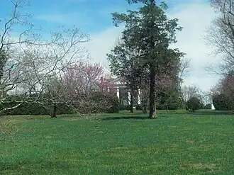 The parlor exhibits plasterwork ceiling medallions and entablatures, the latter copied from a design in Asher Benjamin's American Builder's Companion (1806).[3] Surviving on the Frascati estate grounds are the original kitchen outbuilding and remnants of the extensive original gardens.[3]