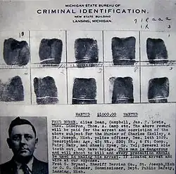 9. ^ "Fred Burke Jail Ledger". Berrien County (Michigan) Sheriff's Department. 2009. Archived from the original on October 9, 2011. Retrieved July 11, 2011.