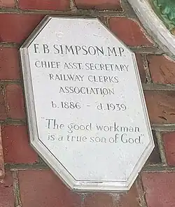 Born in Nottingham and in 1922 Simpson was elected to Leeds City Council as an alderman, and in 1931 was Lord Mayor of the city.[1][2] He was a prominent trades unionist, and served as president of the Railway Clerks' Association from 1932 to 1937.[1][3]