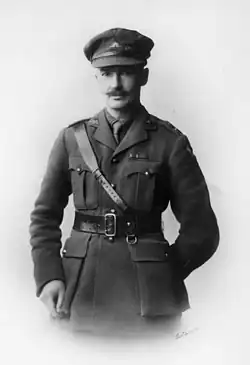 During the First World War he commanded the 7th Field Company, Royal Australian Engineers and was promoted lieutenant colonel in March 1916, after which he commanded the 2nd Australian Pioneer Battalion. Mentioned in despatches four times and awarded a Distinguished Service Order (December 1916)[3] and bar (October 1918), he returned from the war to command the Citizen Military Force's 15th Battalion. The citation for his bar, gazetted in December 1919, reads: