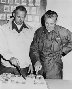 As a flying ace, he was credited with destroying seven and half Japanese aircraft, and caused significant damage to enemy shipping, aircraft on ground and installations.[5][1] From February 1945 until the war’s end, Bakutis served with the Department of the Navy in Washington, D.C., attached to the Office of the Chief of Naval Operations (VF Military Requirements Desk) and the Bureau of Aeronautics.[1]