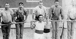 It was thought that the officer who would be in charge of overseeing the new fitness training should undergo the same training as his men.[6] As a result, he and twelve carefully selected non-commissioned officers (NCOs), chosen for their unexceptional physical stature[6] (who later became known as the Twelve Apostles),[7] were put through a twelve month course of physical training at the University of Oxford under the PT specialist and educator Archibald MacLaren (1820–1884) who had trained in Europe and who in 1858 had opened a renowned gymnasium in Oxford where he taught fencing and gymnastics.[8][9] On completing the course it was apparent that each man's physical fitness had considerably improved and they became the foundation of what was to be called the Army Gymnastic Staff (AGS).[10] Today this is the Royal Army Physical Training Corps.