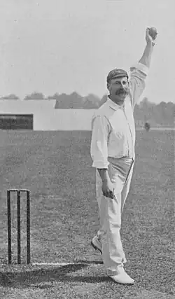 Between 1889 and 1891, Martin was considered in his prime and one of the best left-arm bowlers in the country.[3][11] He took 87 wickets for Kent in 1889 and 106 in total, the first time he had taken over 100 wickets in a season.[2][12] He followed this with 190 wickets in 1890, with 105 for Kent including a hat-trick against Surrey at The Oval, and 140 in 1891, again taking 105 for Kent.[B][2][4][13] He played his only home Test match for England in 1890 and was named as one of the Wisden Cricketers of the Year in the 1892 edition of the almanack.[8][11]