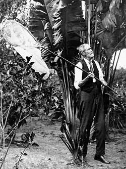 ![]() Frederick Parkhurst Dodd, with a case containing his largest specimen of the moth, Coscinocera hercules, The Hercules Moth, 1930s | |