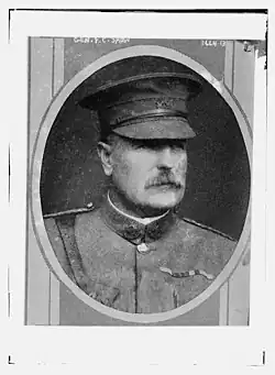 He served in World War I, initially commanding his 9th Brigade in which role he deployed to France with the British Expeditionary Force.[4] He was wounded by a shell that hit his headquarters on 12 November and evacuated to Britain.[4] He was promoted to major general on 28 December 1914, "for distinguished conduct in the Field".[14] After his recovery, in 1915, he was initially appointed as general officer commanding (GOC) of the 29th Division on its mobilisation in January. Just two months later, however, he was replaced by Major General Aylmer Hunter-Weston and was later appointed GOC of the 13th (Western) Division, which he led in the Gallipoli campaign from May until October.[15] He then became director of home defence[16] and subsequently chief of the general staff for Home Forces.[4] This was followed in May 1918 by his being appointed as Commander-in-Chief, Ireland, taking over from Bryan Mahon and receiving a temporary promotion to lieutenant general.[17]