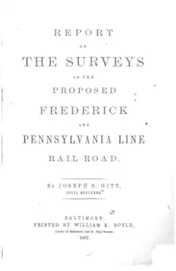 - ^ a b c d Gitt (1867). Report of the Surveys and Location for the Frederick and Pennsylvania Line Railroad. Baltimore, MD: William K. Boyle. p. 1.