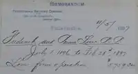 - ^ Coverdale & Colpitts (1946), p. 484: "The corporate property, rights and franchises of the company were sold... on June 9, 1896 and conveyed by deed dated November 20, 1896 (by F&PL trustees Bernard Carter and Milton Urner)to John Sims".