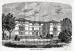 Helbredelsesanstalten for idiotiske Børn, also referred to as Idiotanstalten, was founded in 1855 and originally based in the nadkacent property Bakkehuset. Its new building was built 1859–1860 to design by Ferdinand Meldahl.[1][2]