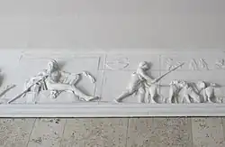 The interior of the two gateways are decorated with a copy of Bertel Thorvaldsen's Alexander frieze. The 35-metre-long and one-metre-tall relief frieze was originally commissioned for the papal Palazzo del Quirinale in 1912 in connection with Napoleon's planned visit to the city. It was completed in just three months.[8]