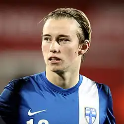 He is a former youth talent of FC Futura of Porvoo. He has played for FC Honka and HJK as a youth player as well.[1] His performances have earned him call-ups for youth national teams on regular basis.[2] To date, he has represented Finnish youth national team on different levels 46 times in total (as of 5 April 2015) and commonly captains the team. He made his debut in the highest level of Finnish football, Veikkausliiga, on 26 October 2013, substituting Sakari Mattila.[3]