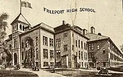 - ^ a b Three Freeport Schools: Freeport High School, No. 1, Grove Street, Washington Avenue School No. 2, Seaman Avenue, Lincoln School No. 3. Archer St.. Postcard, New York Heritage digital collection. Accessed 2021-05-24. The online page title is misleading, but the information on the postcard is presumably accurate.