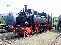 From 1910–1914, class I TV locomotives, designed for the Windbergbahn as Meyer-type bogie locomotives, were introduced and modelled on the narrow-gauge IV K class. The Deutsche Reichsbahn classified them as 98.0 in 1925. They operated until the mid-1960s, replaced by diesel locomotives. The 98 001 (ex I TV 1394) is preserved non-operationally at the Dresden Transport Museum, on loan to the Saxon Industrial Museum in Chemnitz.[33]