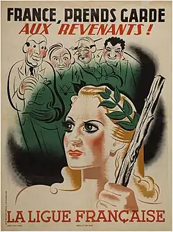The French League (French: Ligue française d’épuration, d’entraide sociale et de collaboration européenne: "French League for purging, mutual aid and European collaboration") was a collaborationist French movement founded by Pierre Costantini in September 1940. Its journal was entitled L'Appel.