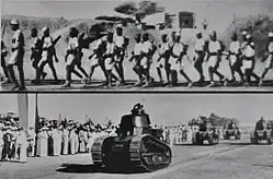 Italy's declaration of war on France and Britain came on 10 June 1940, and the next day Legentilhomme was named supreme commander of all Allied forces in the Somaliland theatre.[12] In French Somaliland he had a garrison of seven battalions of Senegalese and Somali infantry, three batteries of field guns, four batteries of anti-aircraft guns, a company of light tanks, four companies of militia and irregulars, two platoons of the camel corps and an assortment of aircraft.[13]