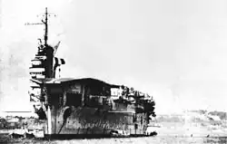 The ship's flight deck was 180 meters (590 ft 7 in) long and it had a maximum width of 27 meters (88 ft 7 in). The deck itself was composed of two overlapping 12-millimeter (0.47 in) plates covered by 50–70 millimeters (2.0–2.8 in) of African teak. She retained the primitive arresting gear used during her trials when completed, but it was replaced during her first refit. The carrier was also fitted with a 12-metric-ton (11.8-long-ton) crane aft of the island that had the secondary task of handling the pair of seaplanes that were embarked for use when the ship was in harbor.[17]