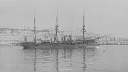 In 1893, Duguay-Trouin was sent abroad again, this time to the Pacific station.[8] In August that year, one of the ship's 164.7 mm guns accidentally exploded during target practice while she was in Papeete, Tahiti. The shell that had been loaded into the gun exploded on the deck, and five men of the gun crew were seriously injured, of whom four died, though several others received less serious injuries. The gun was destroyed and Duguay-Trouin received significant damage from the explosion; parts of the gun were thrown as far as 76 m (250 ft).[26][27] In December 1894, Duguay-Trouin visited Yokohama, Japan, and fired salutes to mark her visit.[28] The ship was transferred to French Indochina in 1895, where Bayard still served as the squadron flagship. The unit also included the protected cruisers Isly and Alger and the unprotected cruisers Forfait and Beautemps-Beaupré [29]
