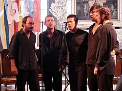 The most iconic form of Provençal folk music is a duo of fife and drum, or ensembles of galoubets-tambourins; the most prominent characteristic of the region's folk music, however, is the Italian musical influence. Performers include Patrice Conte, Yves Rousguisto and André Gabriel. Alpine diverse communities include Savoie, whose distinct hurdy gurdy tradition has produced the modern band La Kinkerne, the Alpes Maritimes choral tradition, which includes choirs like La Compagnie Vocale and Corous de Berra, and the northern region, which has produced a vibrant violin tradition, Dauphiné's rigaudon dance and performers Rigodon Sauvage, Patrick Mazellier and Drailles. Dauphiné also features one of the rare sword dances that have stood the test of time, the Bacchu-ber performed yearly in Briançon.