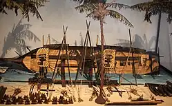 In 1836, under Captain Laplace, Artémise took part in an expedition to the Caribbean, along with Algésiras, and the next year circumnavigated the globe.[1] On 22 April 1839, she ran aground at Tahiti and was damaged. She was refloated with assistance from the American ship Champion. Repairs were estimated to need six months to complete.[3]