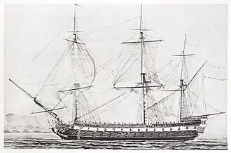 On 12 April 1782, she took part in the Battle of the Saintes under Chef d'escadre Vaudreuil, with Cheyron du Pavillon as flag captain.[3][4][5]
