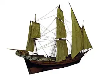 In 1763, Singe patrolled the Mediterranean with her sister-ship Caméléon and the frigate Pléïade, to ward off the Salé Rovers.[2] On 15 July 1763, Singe mistakenly engaged a galiot from Algiers, which she mistook for a Salé rover. Pléïade intervened fired two broadsides into the galiot, which sank with all hands before the error was realised. This triggered a diplomatic incident and Captain Fabry had to negotiate a resolution to the crisis.[3]