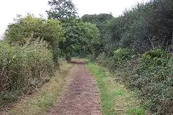 ![]() The old Freshwater to Newport railway line (now part of CycleRoute NCN23 route) as it approaches the village. | |||||