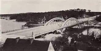 Initially referred to as the Havelbrücke (Havel bridge), the bridge was renamed Freybrücke in 1913 by a decision of the Osthavelland district. This renaming was intended to pay tribute to the "meritorious leader" of the construction of the Döberitzer Heerstraße (today known as Heerstraße), the Geheime Oberbaurat Adolf Frey.[3][4]