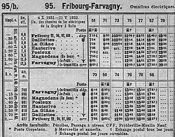| Operator(s) | Compagnie des omnibus électriques Fribourg–Farvagny (F–F) (1911–1929) Chemins de fer électriques de la Gruyère (CEG) (1929–1932) | |||||||||||||||||||||||||||||||||||||||||||||||||||||||||||||||||||||||||||||||||||||||||||||||||||||||||||||||||||||||||||||||||||||||||||||