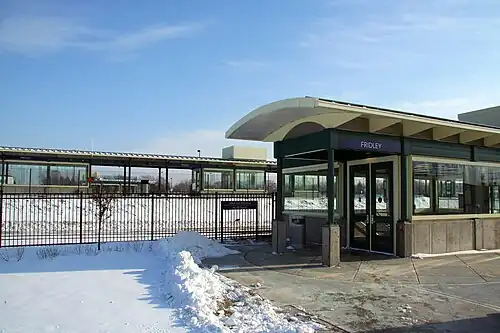 Fridley station is a commuter rail station in Fridley, Minnesota, located at Main Street NE and 61st Avenue NE. It is served by the Northstar Commuter Rail line. The station features bicycle lockers and two park and ride lots with a total capacity of 611 spaces. The commute time to downtown Minneapolis from this station is about 20 minutes.[2] The station has a single platform on one main track, which is accessible on either side of the tracks through a tunnel.