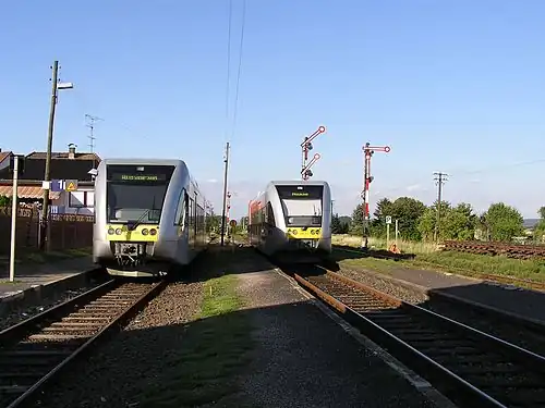 The Friedberg–Mücke railway is a railway that was opened in 1890/97 in the Wetterau and Vogelsberg regions in the German state of Hesse. Sections of the line are also called the Horlofftalbahn (Horloff Valley Railway) and the Seentalbahn (Seen Valley Railway). It originally connected three major railways that run from Giessen, namely: