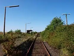 In 1968, the line between Inheiden and Berstadt-Wohnbach had to be relocated to allow lignite mining. This also caused Obbornhofen-Bellersheim station to be relocated on 9 June 1968.[2] The old line is now dismantled, but still recognisable from the air.