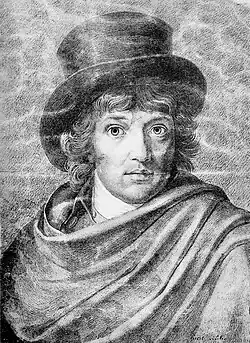 Friedrich (Fritz) Bury (12 March 1763 – 18 May 1823) was Court painter to the royal courts of Kassel and Brussels, a German painter born in Hanau. He studied first under his father Jean Jacques Bury,[1] who was a goldsmith and professor in the Academy of Design in Hanau, and with Anton Wilhelm Tischbein. In 1780 he visited for two years the Kunstakademie Düsseldorf, where he met Johann Heinrich Lips (who was 5 years older), with whom he returned to Hanau at the age of 19 and two month later they traveled to Rome. From November 1782 to July 1785 he lived with a nephew of Tischbein, Johann Heinrich Wilhelm Tischbein, Johann Georg Schütz and Lips in a rear building of the Palazzo Piombino in Via del Babuino 51.[2] Later they followed their landlord to Via del Corso no. 18, now known as the Casa di Goethe, as Johann Wolfgang von Goethe also lived and worked there for over a year.