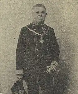 In 1865, Friedrich Kleinwächter habilitated in Prag, whereupon he became an ordinary professor at the Technical University Riga in Riga/Russia and since 1875 until his emeritation he was ordinary professor of political economics (Ordinarius für Staatswissenschaften) at the newly established "Franz-Josephs-Universität" at Czernowitz. There he lectured finance in combination with financial law and public administration. Later he switched to economics in general.[2] 1882/83 and 1893/94 Kleinwächter was Rektor of the university of Czernowitz.[3]