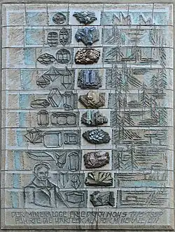 After acquiring the job of a foreman at a mine in 1801, Mohs relocated in 1802 to Austria, where he was employed in trying to identify the minerals in a private collection of the banker J. F. van der Nüll.[3] Mohs described this collection, and a catalogue was printed and published.[5] In 1812 he relocated to Graz where he was employed by Archduke Johann in his newly established museum and academy of science, which was divided subsequently into the Joanneum and the Graz University of Technology. In 1818, Mohs was appointed successor of his former professor at the Freiberg Mining Academy, A. G. Werner, who died in 1817.[3][6] In 1826 Mohs became full professor of mineralogy at the University of Vienna.[6] At the same time he was assigned curator of the Imperial Mineralogical Collection, into which the van der Nüll collection of minerals was incorporated in 1827.[7] In 1835, Mohs resigned.[3] He became Bergrat which meant being an imperial counselor in charge of mining affairs,[3] published by orders from his department an instruction on mining,[5] and was commissioned with the establishment of a montanistic museum in Vienna.[7]