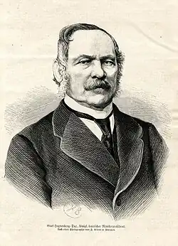 The historian Doeberl described him as "one of the finest political minds that Bavaria has possessed in the last century, with calm objectivity and clear thought, rich in sarcasm and apt wit".[2] He died on June 2, 1872, after less than a year in office. Adolph von Pfretzschner became the new chairman of the Council of Ministers and Foreign Minister.