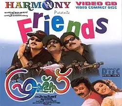 Friends is a 1999 Indian Malayalam-language buddy comedy-drama film written and directed by Siddique, produced by Lal and starring Jayaram, Mukesh, and Sreenivasan with Meena, Divya Unni, Jagathy Sreekumar, V. K. Sreeraman, Janardhanan and Cochin Haneefa in supporting roles.[2] It was the highest-grossing Malayalam film of the year, grossing around ₹11 crore at the box office against a budget of ₹ 2 crore.[1] It was later remade into Tamil with the same name (2001) and into Telugu as Snehamante Idera (2001) and Odia as Dosti.[3]