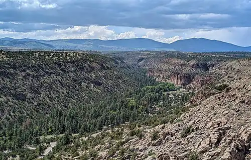 Frijoles Creek, or Rito de los Frijoles,[1] is a 14-mile stream in the Pajarito Plateau of New Mexico. It flows from the slopes of the 10,207-foot (3,111 m) Cerro Grande Peak, through Frijoles Canyon in the Bandelier National Monument, to the Rio Grande at about 5,600 feet (1,700 m).[2]