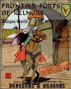Shortly after the publication of D&D by TSR, Judges Guild received permission from TSR to create licensed "player aids" for the fantasy role-playing game.[3] Frontier Forts of Kelnore, written by Dave Sering, and featuring art by Sering and Jennell Jaquays, was published in 1978 as a 32-page book with a simple sketch on the cover.[1] The following year, Judges Guild released a second printing featuring full-color artwork on the cover.