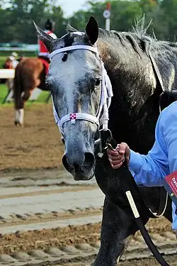 Frosted (foaled April 18, 2012, in Kentucky)[1] is an American Thoroughbred racehorse. In 2016, he set a stakes record while winning the Metropolitan Handicap in a "dazzling performance"[2] and followed up with a win in the Whitney Handicap. Prior to that, despite winning several stakes races, he was best known for finishing behind American Pharoah four times, including a runner-up performance in the 2015 Belmont Stakes.