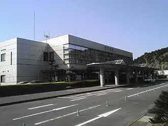 Fukue Airport (福江空港, Fukue Kūkō) (IATA: FUJ, ICAO: RJFE), is a third class airport located 1.7 NM (3.1 km; 2.0 mi) southwest[2] of Gotō, Nagasaki Prefecture, off the western coast of Kyūshū, Japan. The airport also serves the city of Fukue. It is also known as Gotō-Fukue Airport (五島福江空港, Gotō Fukue Kūkō) and, since 2014,[3] also styled Gotō Tsubaki Airport (五島つばき空港).[4] Currently the terminal building's exterior displays both names.[5] Tsubaki means camellia, and is a notable reference on Fukue Island which is famed for producing camellia oil[6] and is home to two ancient camellia trees each over 300 years old[7][8] that have been declared 'national monuments'[9]